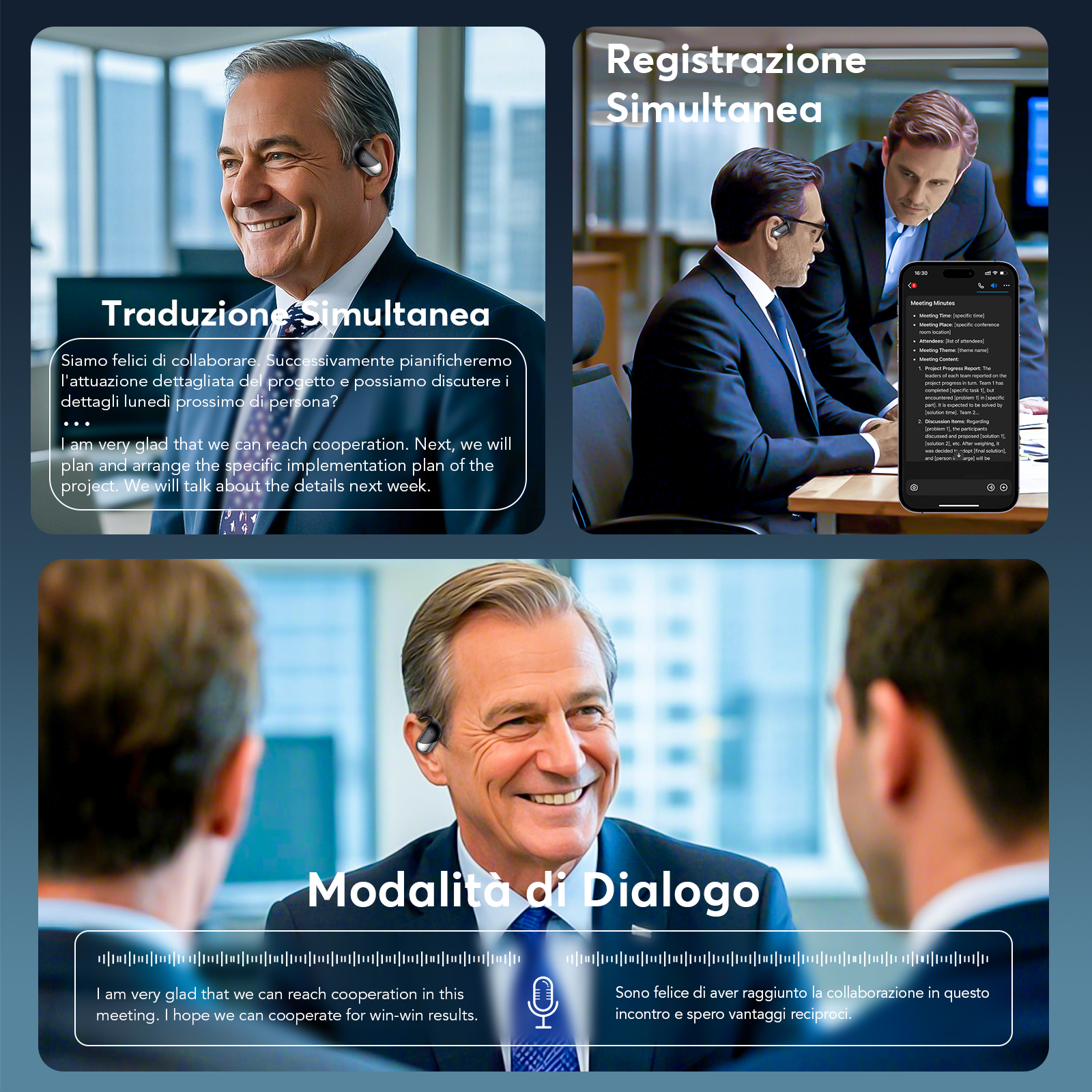 - [Modalità di traduzione multi-scenario e protezione della privacy] Dotato di modalità innovative come Registrazione in diretta, Interpretariato simultaneo, Diretta, Videochiamata e cuffie traduzione simultanea di chiamate vocali. Durante le chiamate, l’app genera un link di invito per una comunicazione fluida tramite browser, con traduzioni in tempo reale per interazioni fluide.