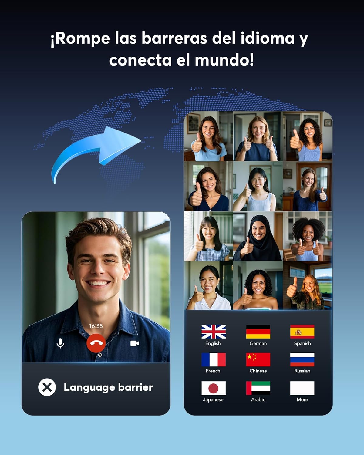 - [Modos de Traducción para Múltiples Escenarios y Protección de Privacidad] Equipado con modos innovadores como Grabación en Vivo, Interpretación Simultánea, Cara a Cara, Videollamadas y Traducción en Llamadas de Voz. Durante las llamadas, la app genera un enlace de invitación para una comunicación fluida a través del navegador, con traducciones en tiempo real para interacciones sin interrupciones.