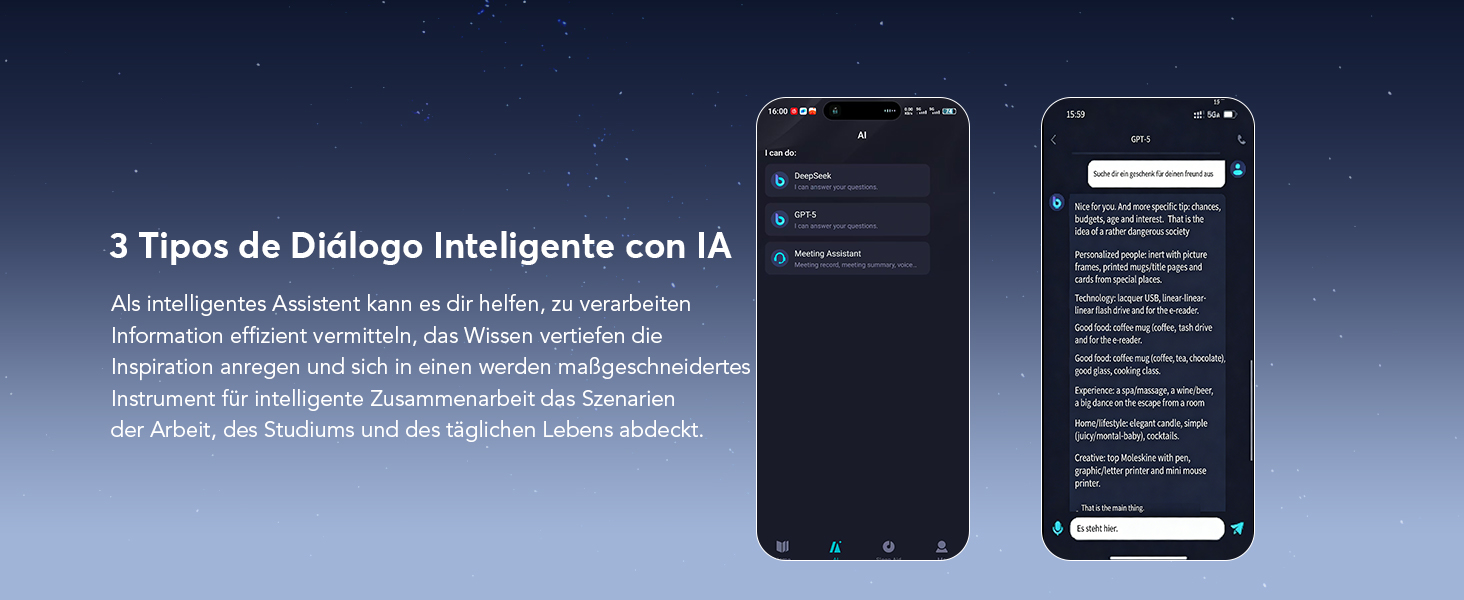 - [Soporte de Traducción Multilingüe de Alta Precisión] Ofrece traducción bidireccional en tiempo real en 198 idiomas, incluidos chino, inglés, alemán, español, italiano, francés, japonés, etc., satisfaciendo las necesidades de comunicación global. También incluye funciones avanzadas como Asistente de IA, Chat de IA y Generación de Imágenes con IA, convirtiéndolo en un dispositivo versátil para el trabajo y el uso diario.