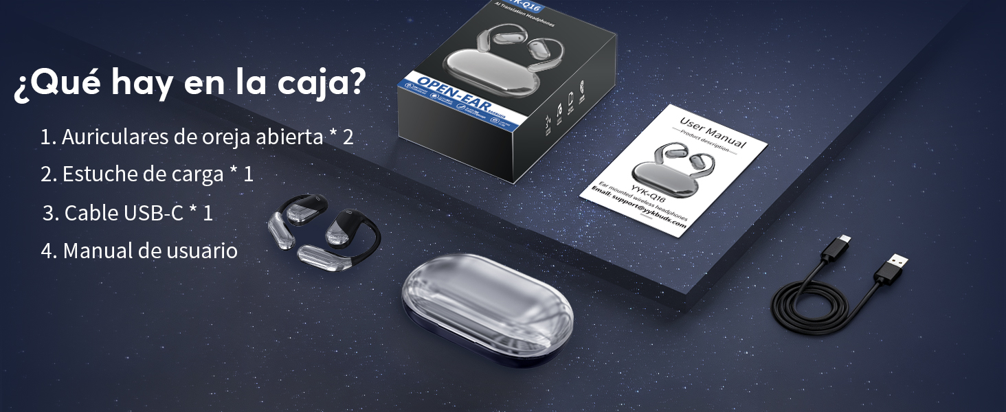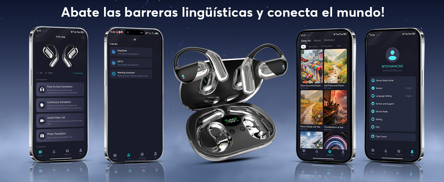 - [Funcionalidad 3 en 1 y Calidad de Audio HD] Combina traducción, reproducción de música y llamadas, siendo ideales para el trabajo y el ocio. Los auriculares Q16 H3 con IA cuentan con un altavoz de diafragma de 14.2 mm y 4 micrófonos de alta precisión para un sonido excepcional, ofreciendo música y llamadas claras en cualquier situación.
