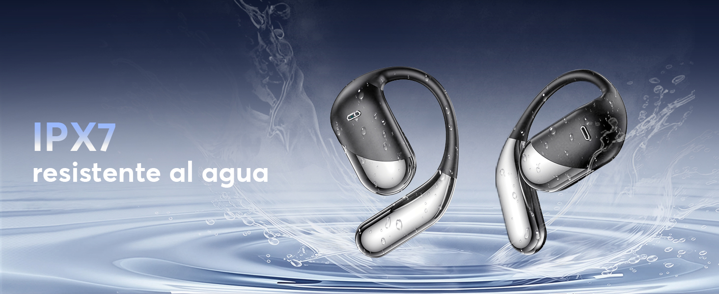 - [Diseño Open-Ear para Mayor Comodidad] Fabricados en material PC ultraligero, cada auricular pesa solo 8 g y tiene certificación IPX7 a prueba de agua. Los ganchos de silicona suave aseguran un ajuste cómodo y seguro, perfectos para deportes, entrenamientos y actividades diarias. Disfruta de la música sin perder conciencia de tu entorno.